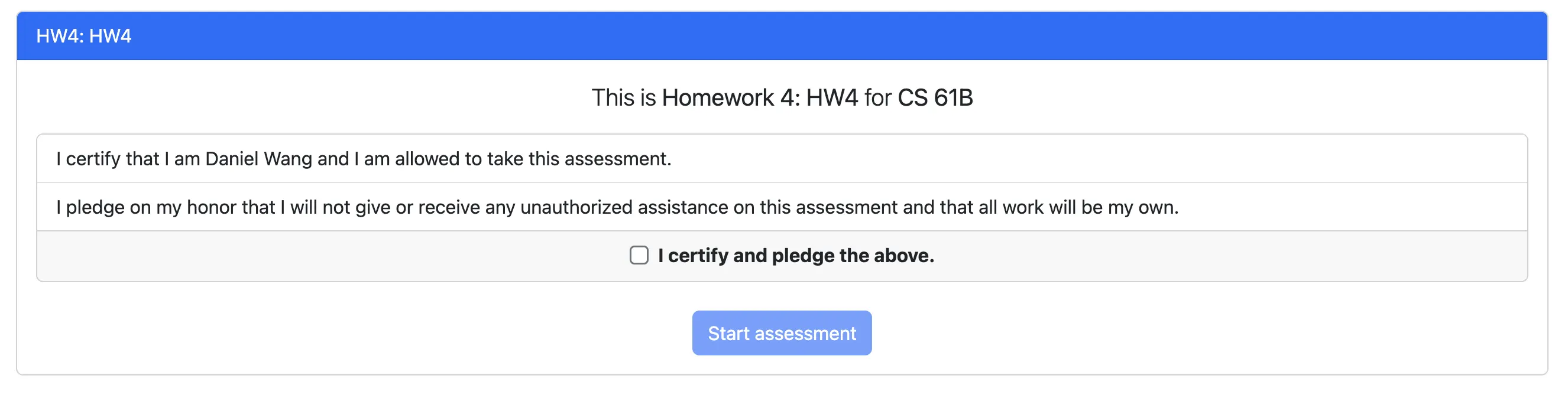 When taking the midterm, you’ll be asked to certify a similar pledge.